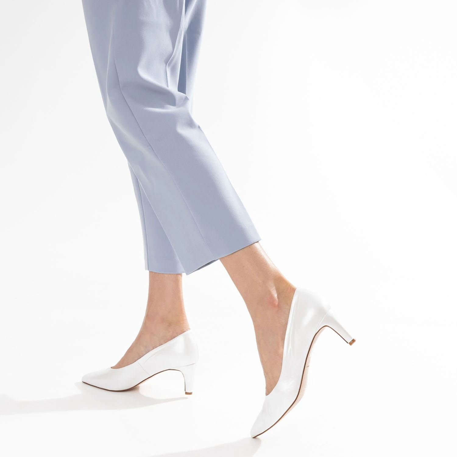 Essentialité, c’est le mot le plus juste pour définir cet escarpin pour femme. En cuir blanc avec finition nacrée, il présente un bout pointu et un talon fin de 6 cm. Un modèle classique, à associer avec une robe de mariée ou de cérémonie, ou encore une tenue monochrome.