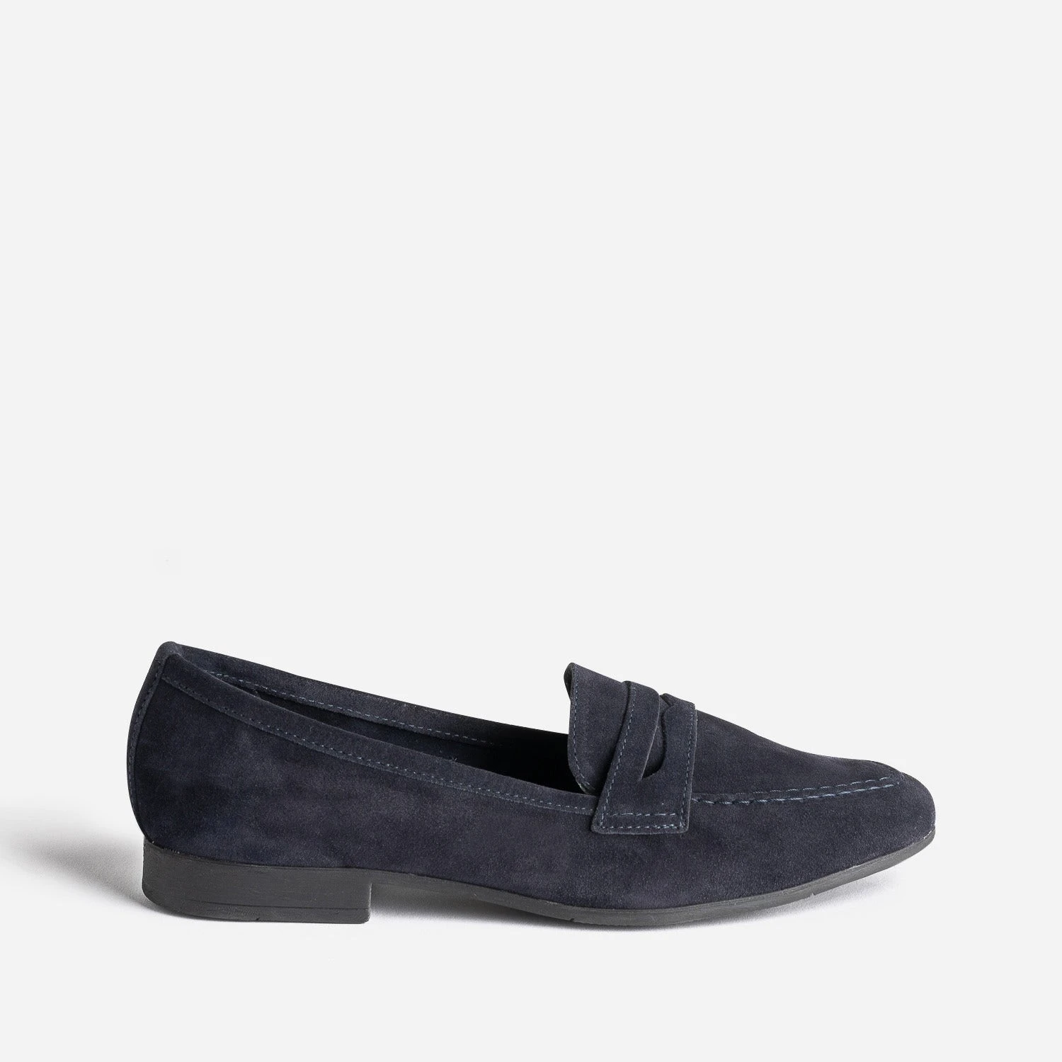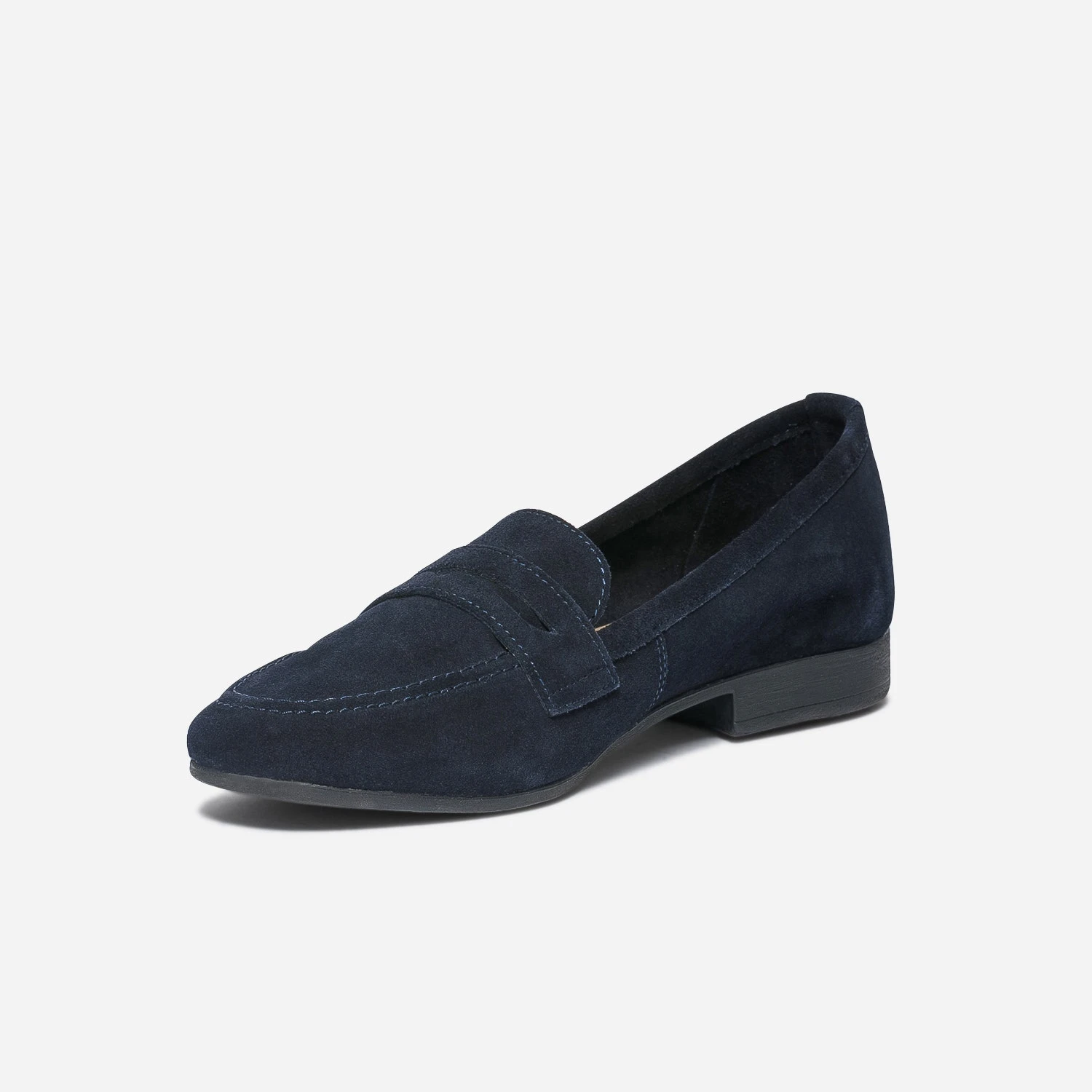 Envie d’une chaussure plate, sobre, classique, idéale pour la mi-saison ? Essayez le mocassin. Bleu marine, il séduit par son cuir velours tout doux et sa découpe masque placée sur le dessus du pied. Il va avec tout. Avec une chemise blanche et un jean mom bleu. Avec une robe chemise en lin. Avec un costume camel.