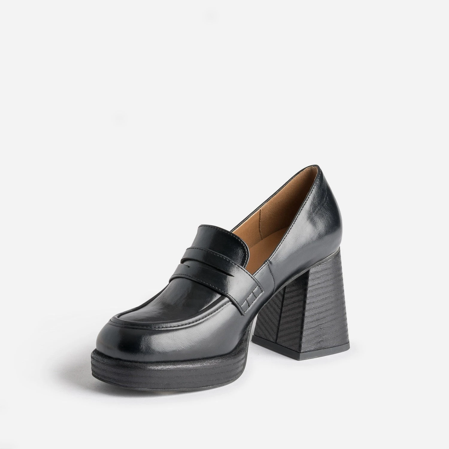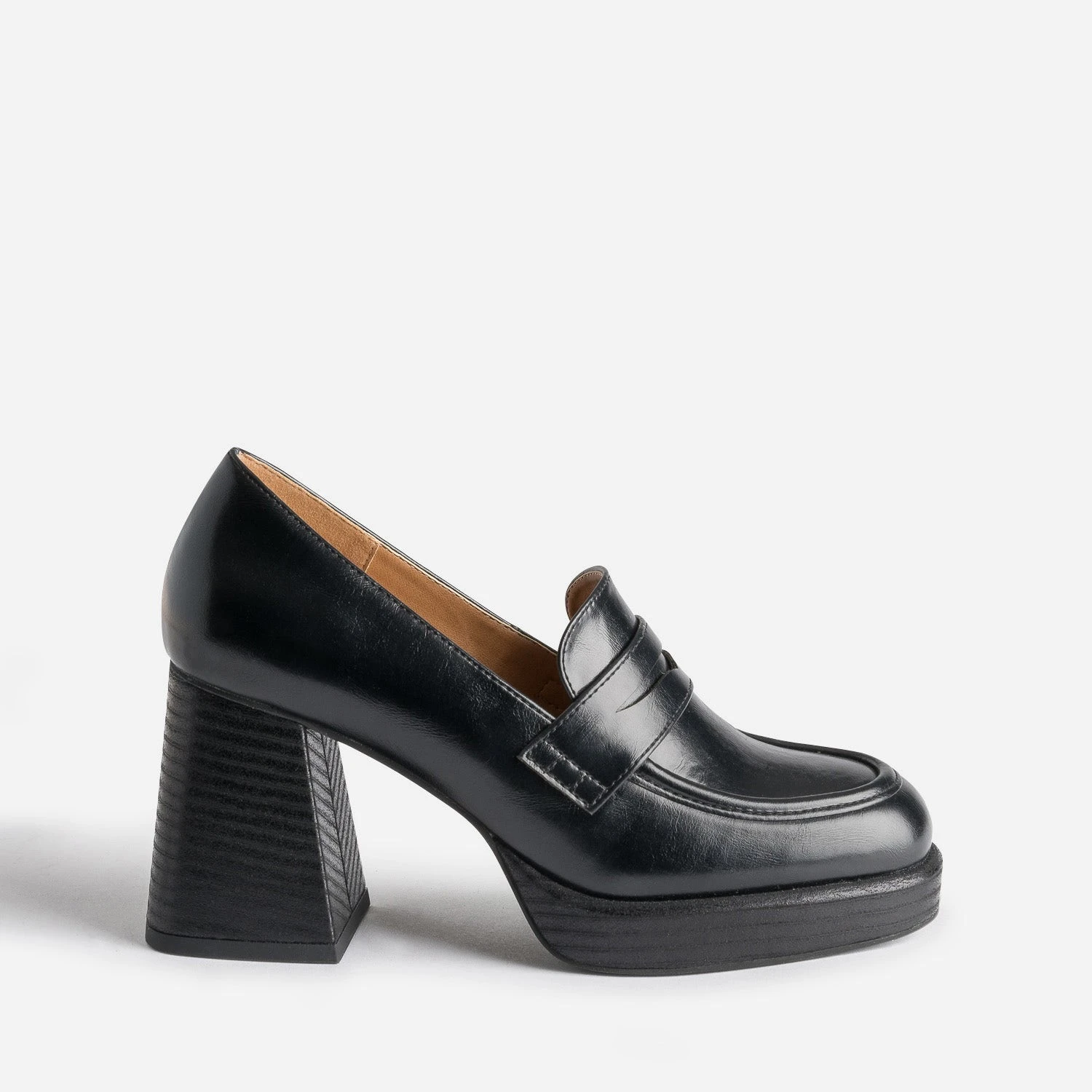 Mocassin Noir à Talon Et Plateforme