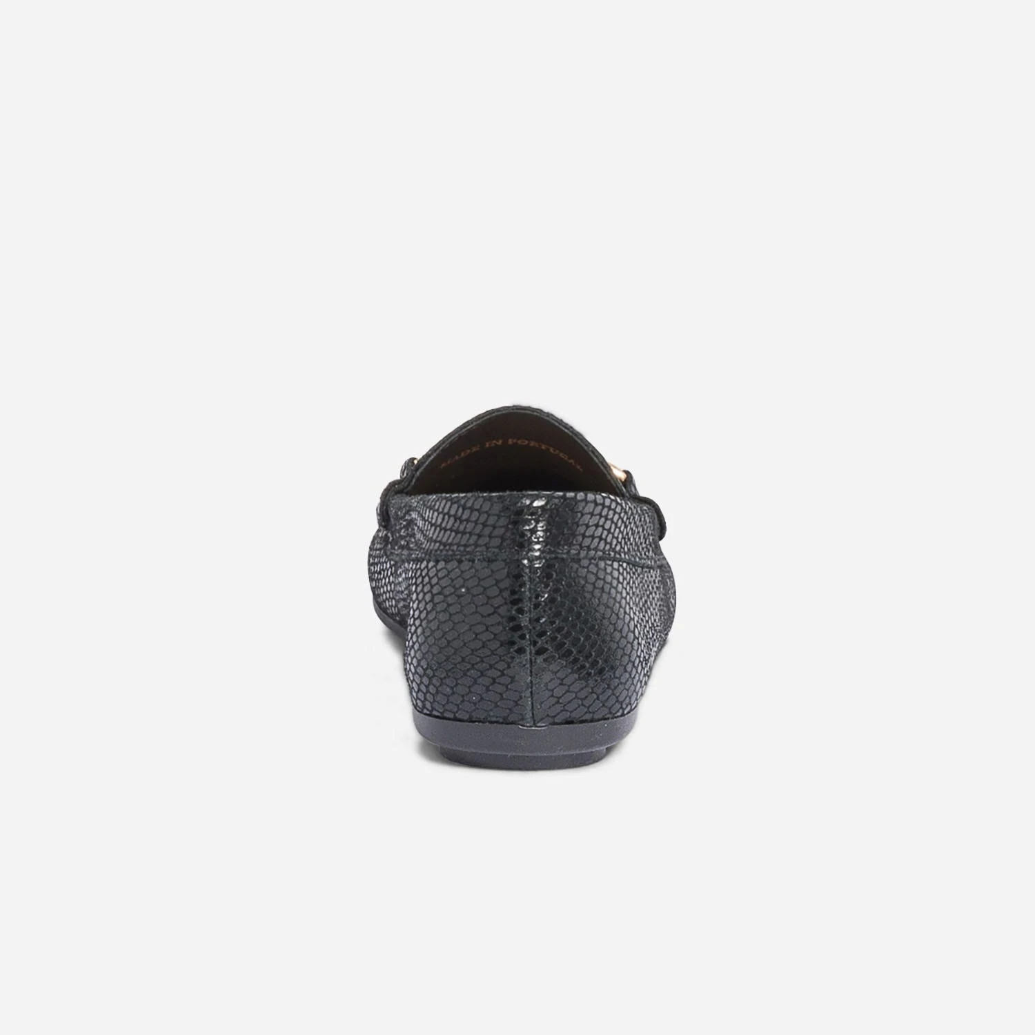 Le mocassin est idéal pour gérer l’entre-saison en douceur. Il se porte impérativement nu-pieds pour profiter de la souplesse et du confort du cuir velours. Coloris noir, il accueille un effet python très réussi, souligné d’un mors doré. Un modèle à privilégier avec des pièces unies dans les tons neutres.