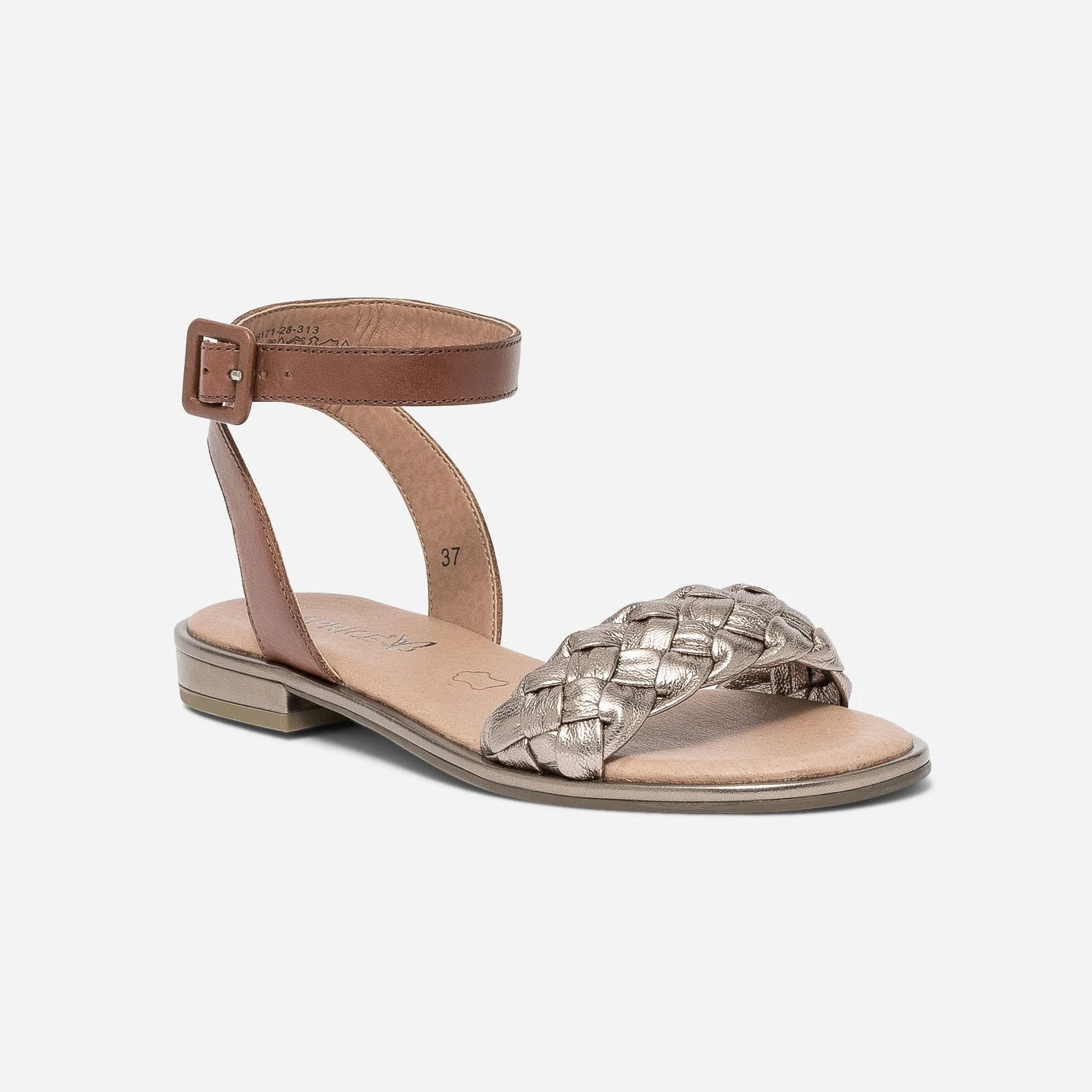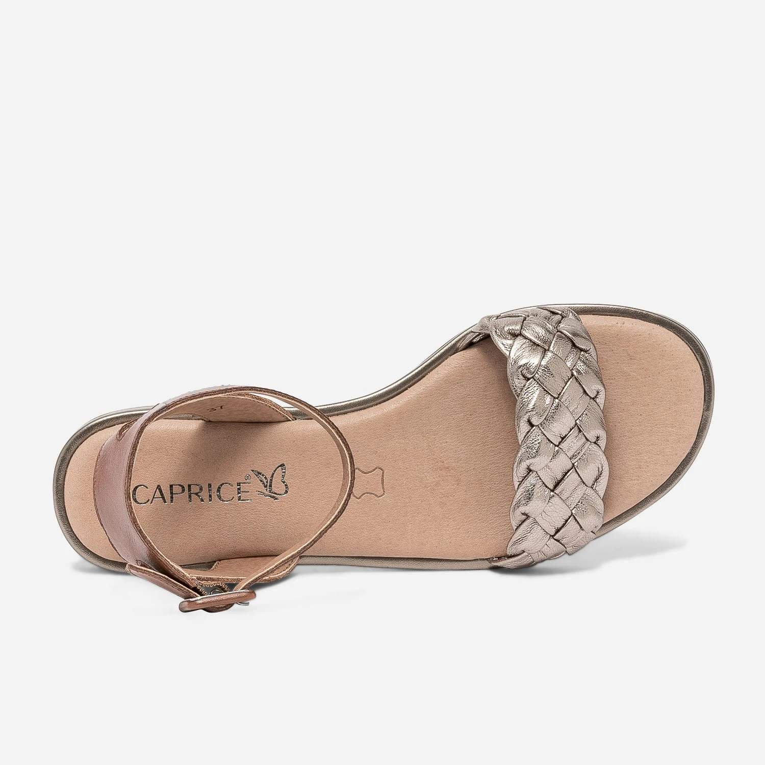 Spécialiste du bien-être, la marque CAPRICE propose des chaussures au confort incomparable. A l’heure où les beaux jours et la chaleur reviennent, faites l’expérience d’une sandale qui sublime et soulage le pied. Une bride en cuir cognac autour de la cheville, une large bride mordorée et tressée au-dessus du pied, elle présente une doublure cuir et une première moussée. Un modèle qui s’adapte facilement à vos tenues quotidiennes, avec des tons neutres ou pastel.