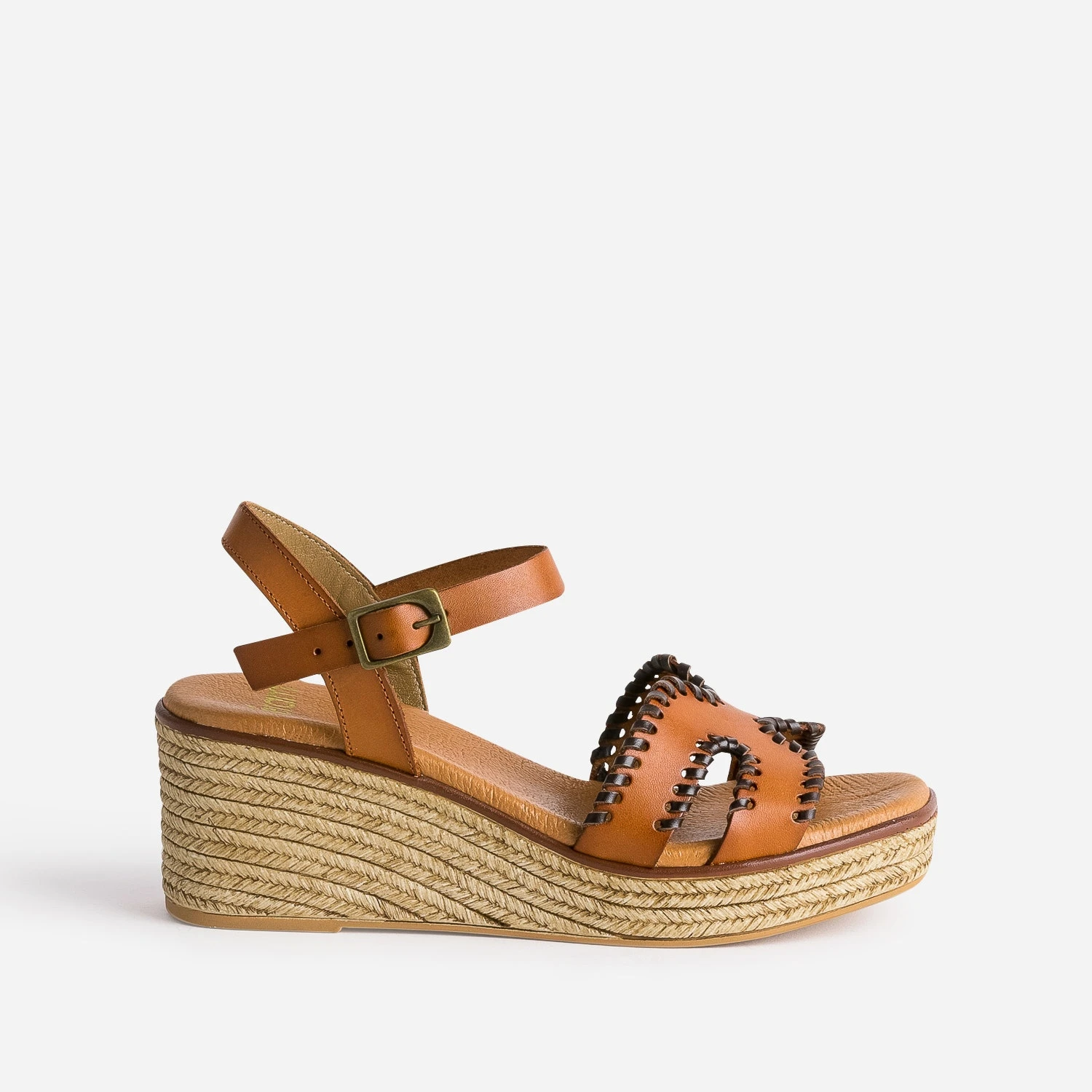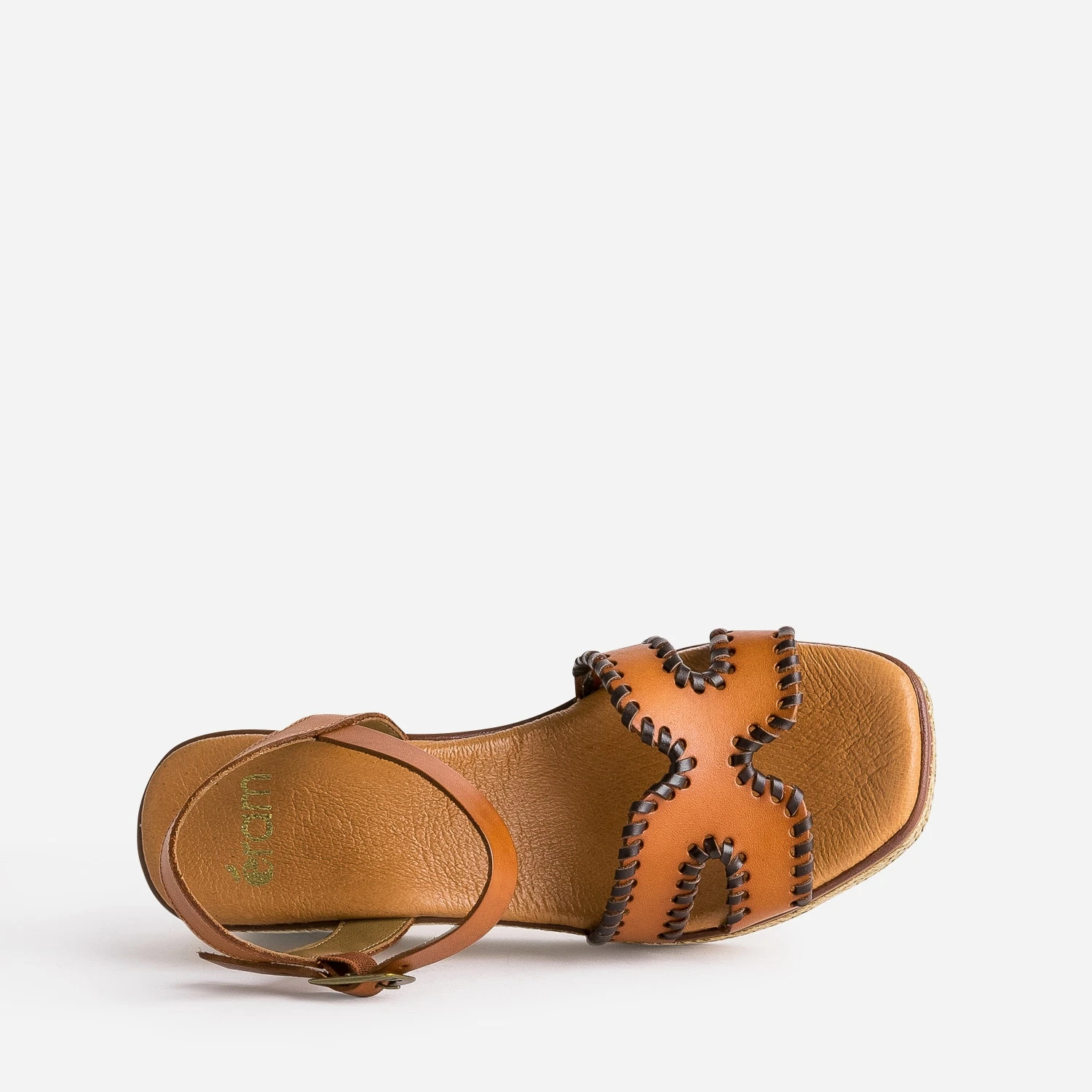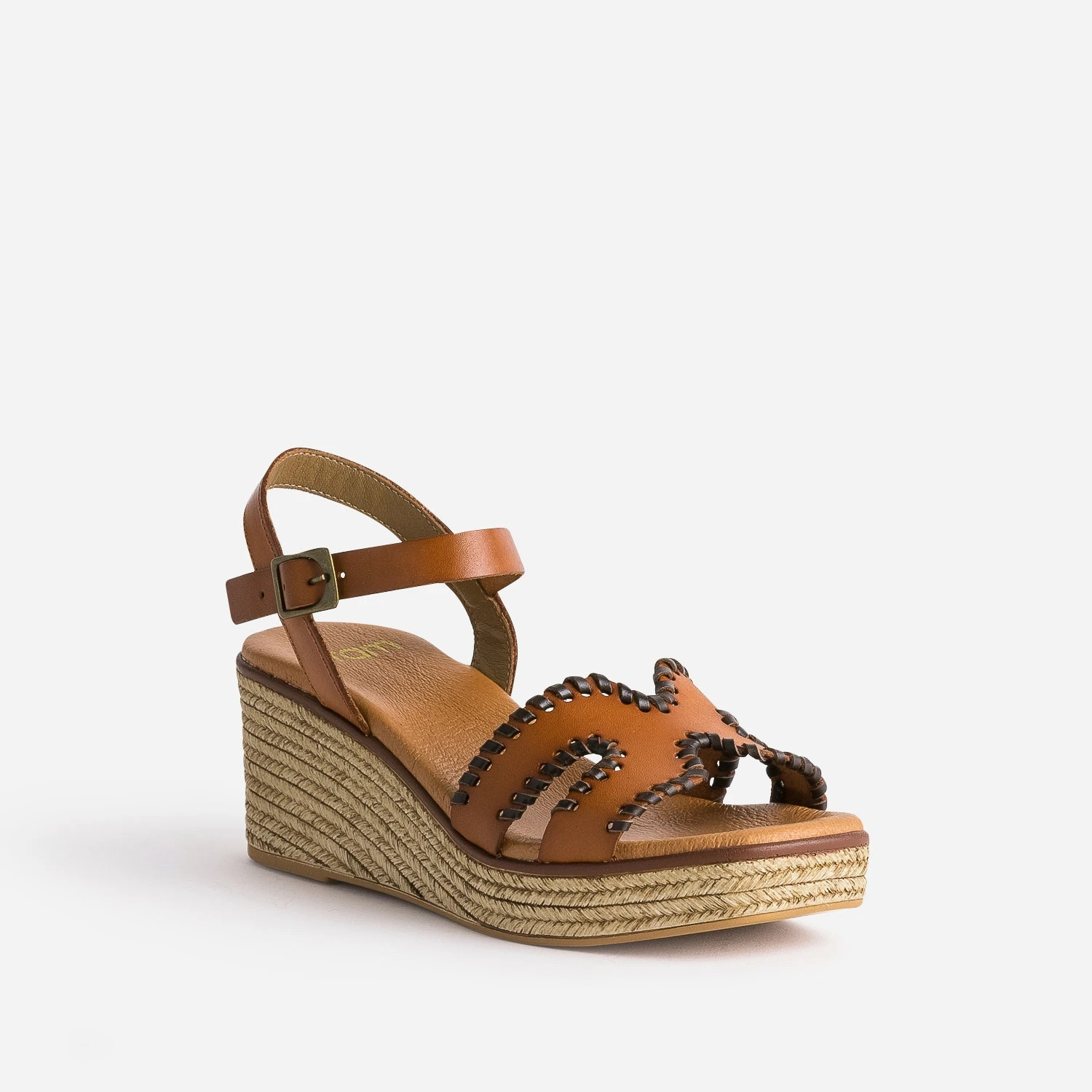 Sandale Compensée Cognac Cuir Tressé Marron
