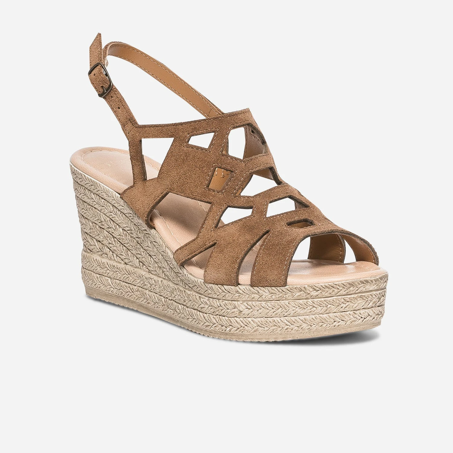 Sandale Compensée TEXTO Marron En Cuir Velours
