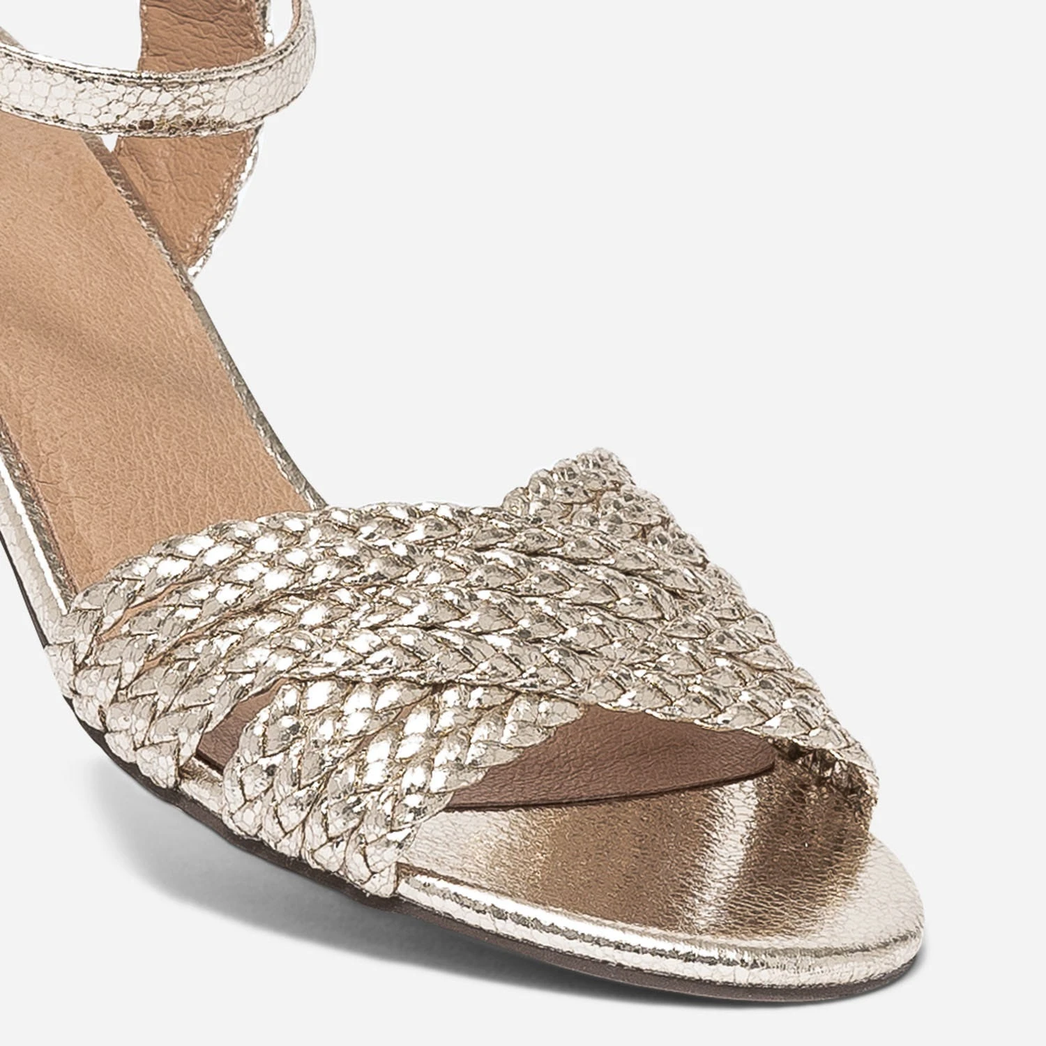 Le temps des cérémonies d’été vient de s’annoncer. L’occasion de vous offrir des chaussures à la fois raffinées et faciles à reporter. La sandale femme est une valeur sûre. Ses brides tressées, sont sublimées par un coloris or et le talon de 5 cm permet de trotter toute la journée, voire la soirée, sans se fatiguer. Un modèle parfait avec une robe longue pour un style bohème chic, ou avec un top blanc et un jean mom, au quotidien.