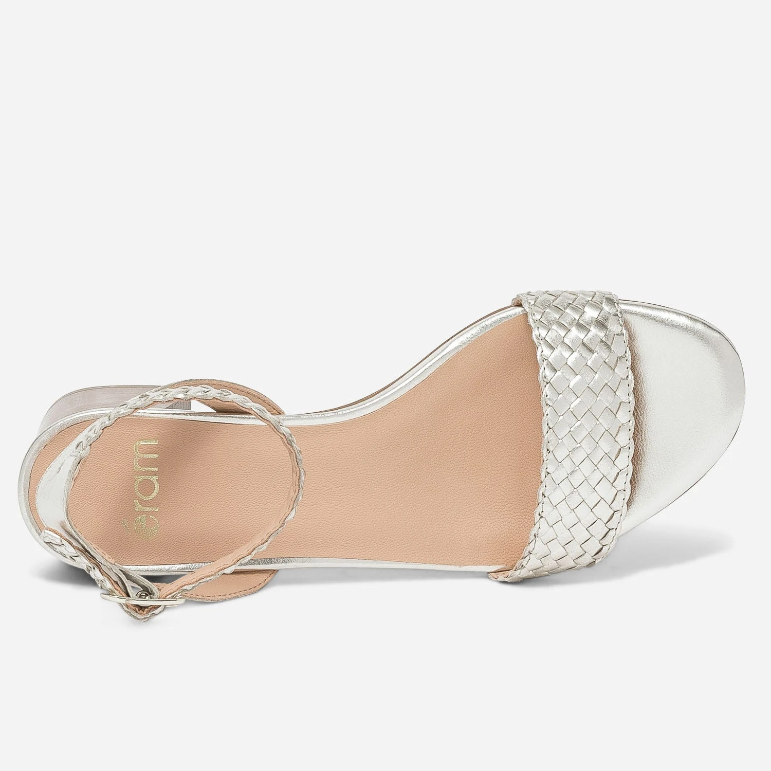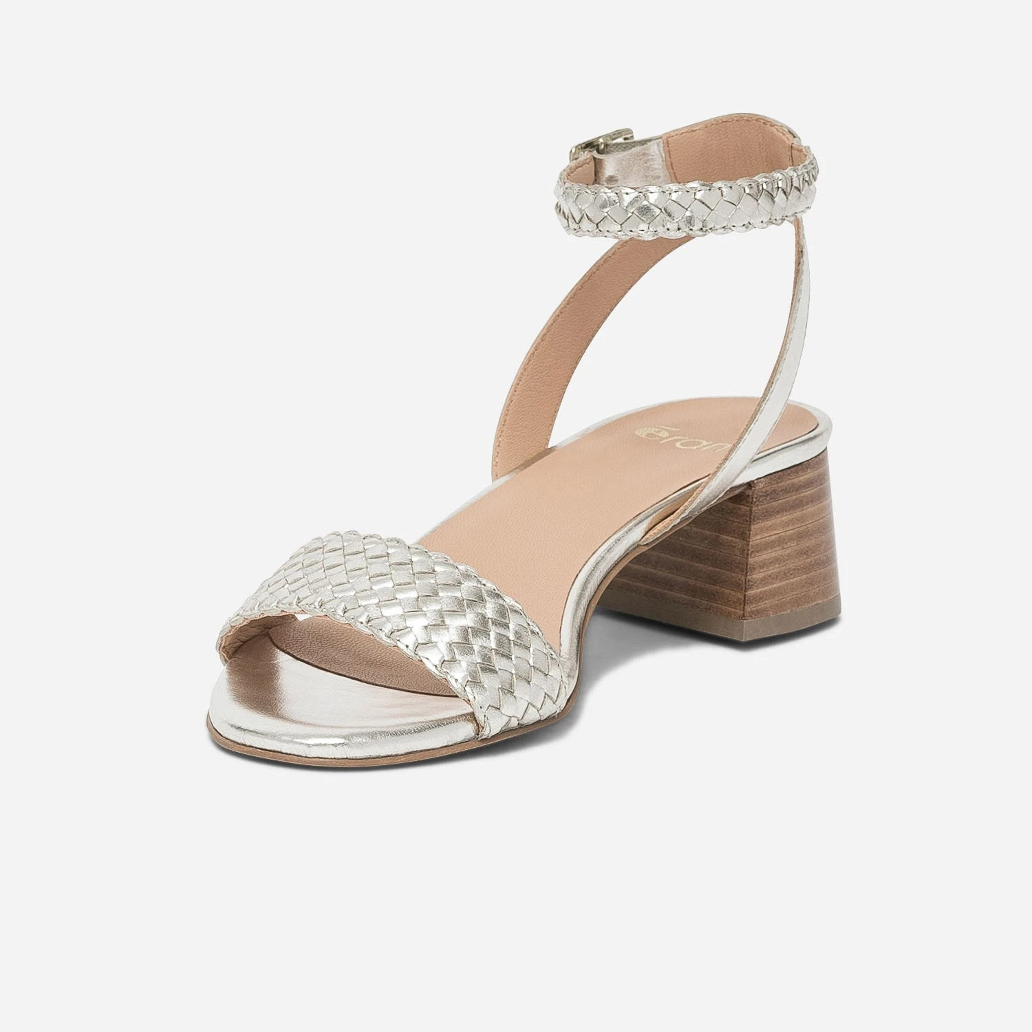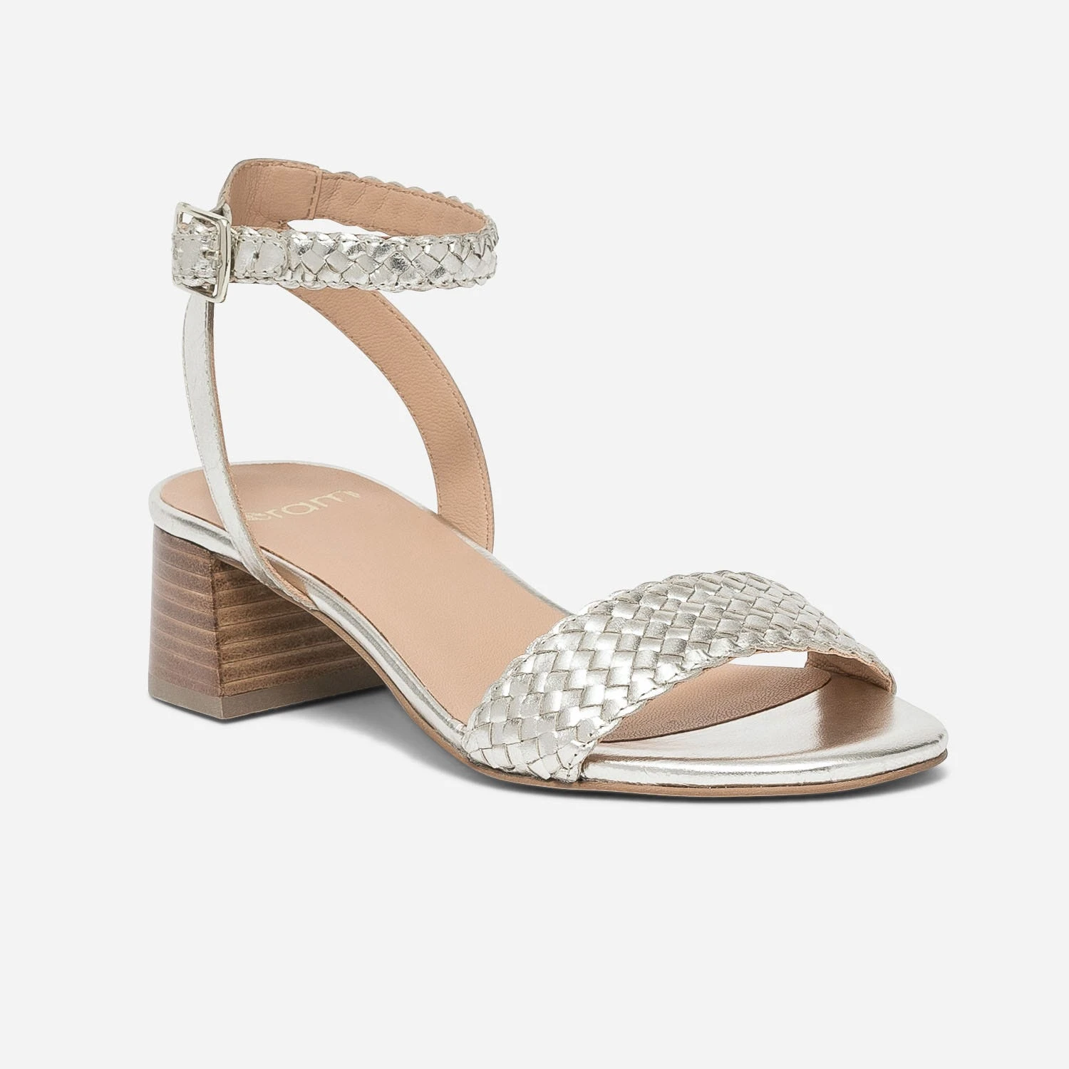 Classique, mais pas trop. Chic, juste ce qu’il faut. La sandale femme dorée impose son allure raffinée, tout au long de l’été. Confectionnée en cuir, elle présente des bride tressées autour de la cheville et sur le dessus du pied. Elle est montée sur un talon de 4,5 cm imitation bois, légèrement flare. Un modèle dont vous ne vous lasserez pas, avec une petite robe noire ou un costume lilas.