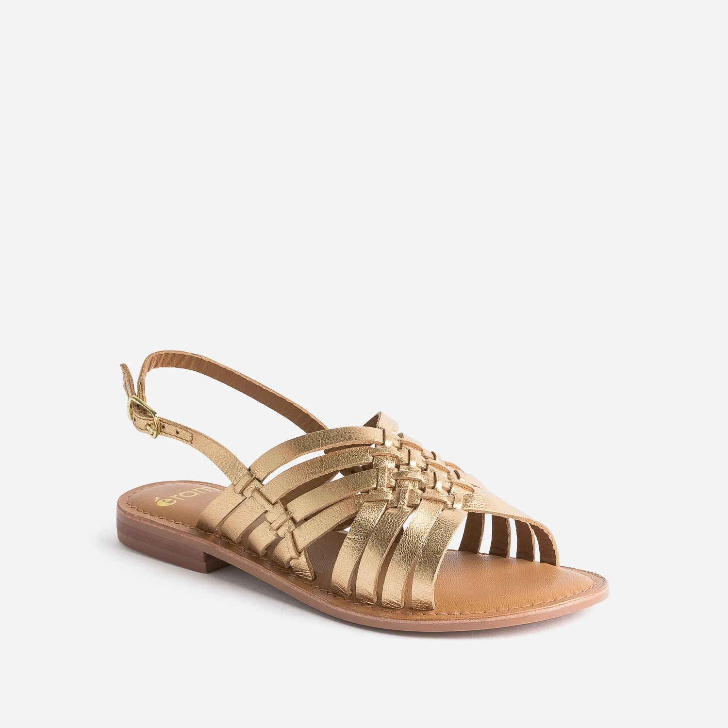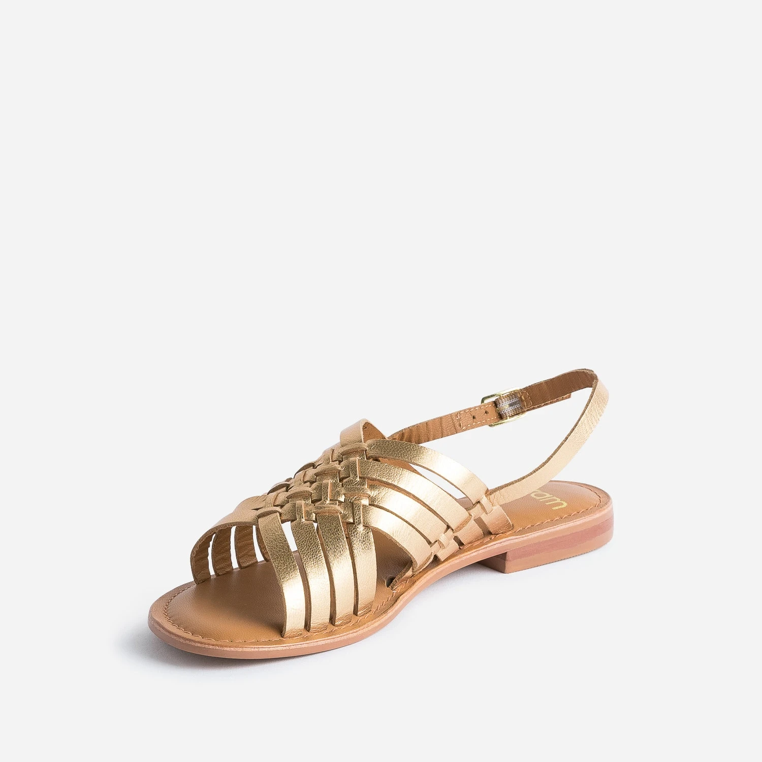 Souvent plus décontractée qu’un modèle à talon ou compensé, la sandale plate sort son épingle du jeu. Comment ? Par un cuir lisse, un coloris doré et un jeu de tressage subtil qui anime le dessus du pied. Imaginez-la avec une robe longue et une couronne de fleurs dans les cheveux, pour un look de cérémonie esprit bohème. Ou encore avec une petite robe noire et des bijoux dorés, pour un look easy chic pour le bureau.