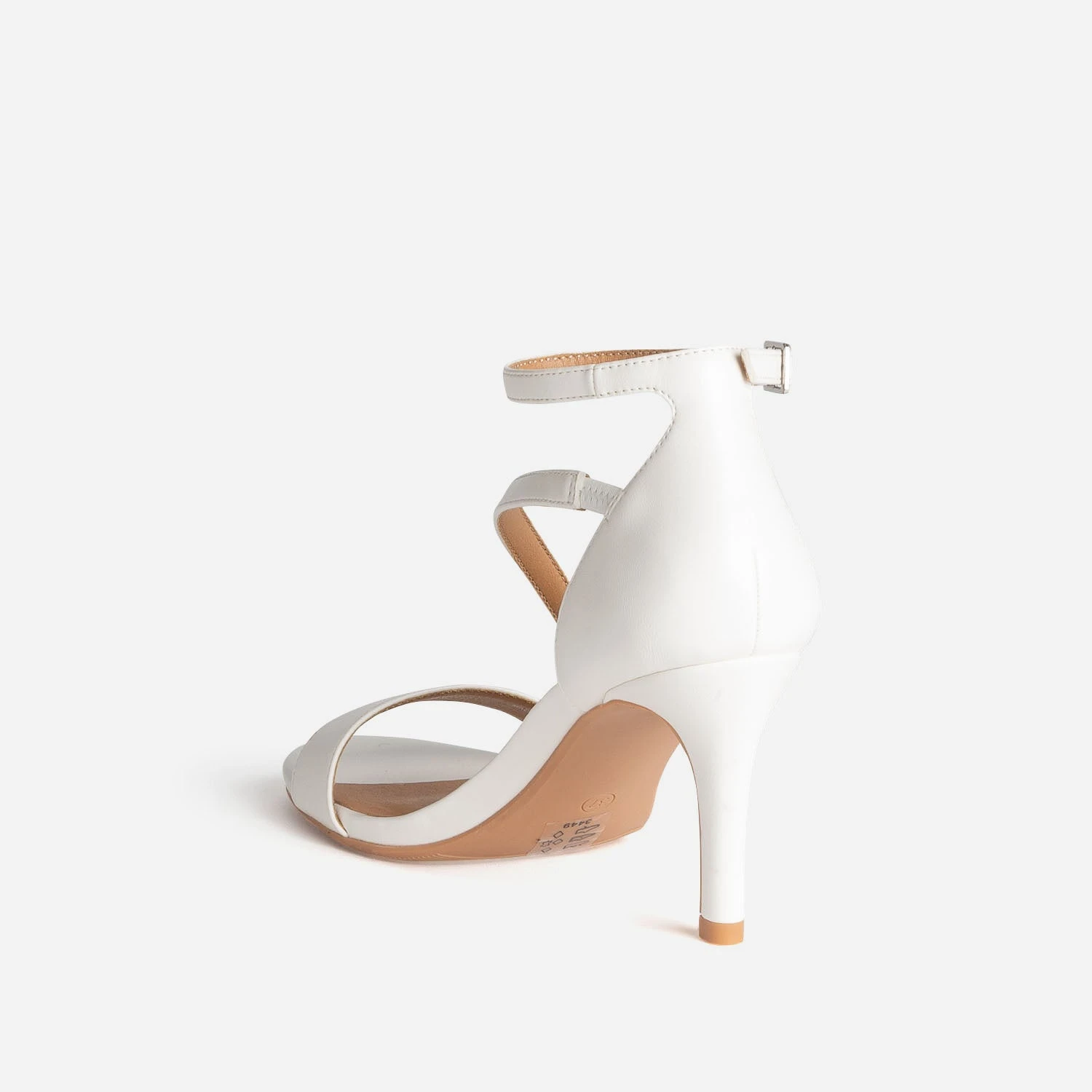 Le premier mot qui vient à l’esprit quand on découvre cette sandale, c’est Wahou ! Une matière synthétique lisse, mise en valeur par un coloris blanc immaculé, un talon fin de 8,5 cm, qui allonge la silhouette, et des fines brides, qui épousent le pied avec délicatesse. Un modèle ultra féminin pensé pour faire le show. A vous robe-fourreau, tailleur inspiration smoking ou combinaison-pantalon rehaussée de dentelle, digne des plus belles cérémonies.
