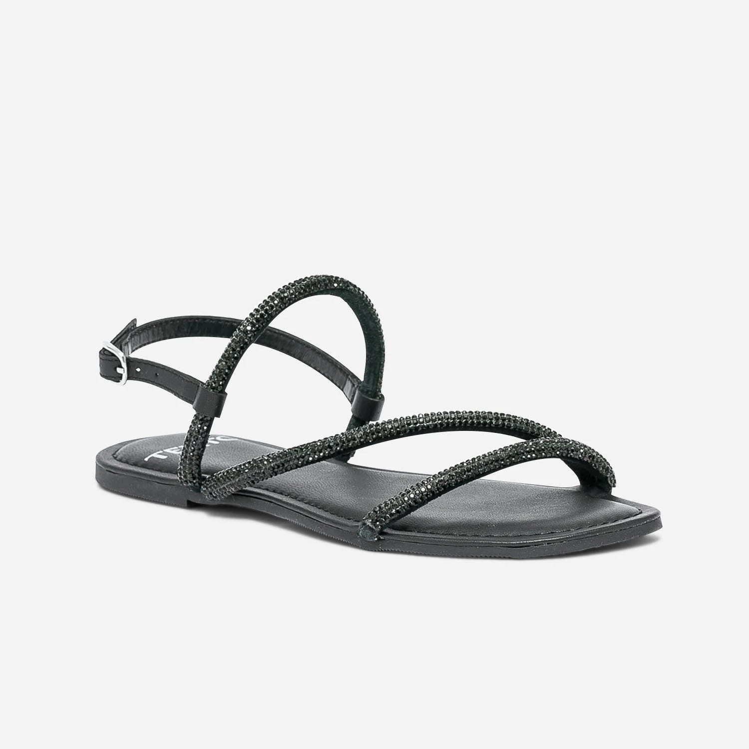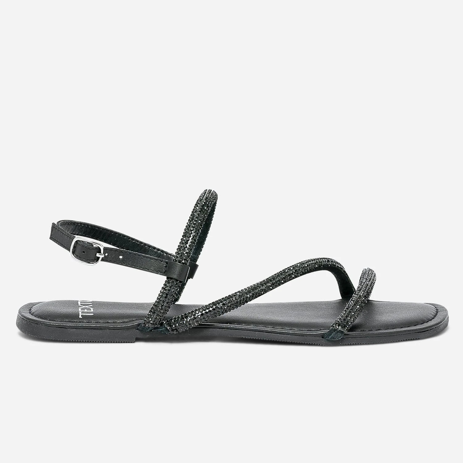 Sandale TEXTO Noire En Cuir à Brides Strassées
