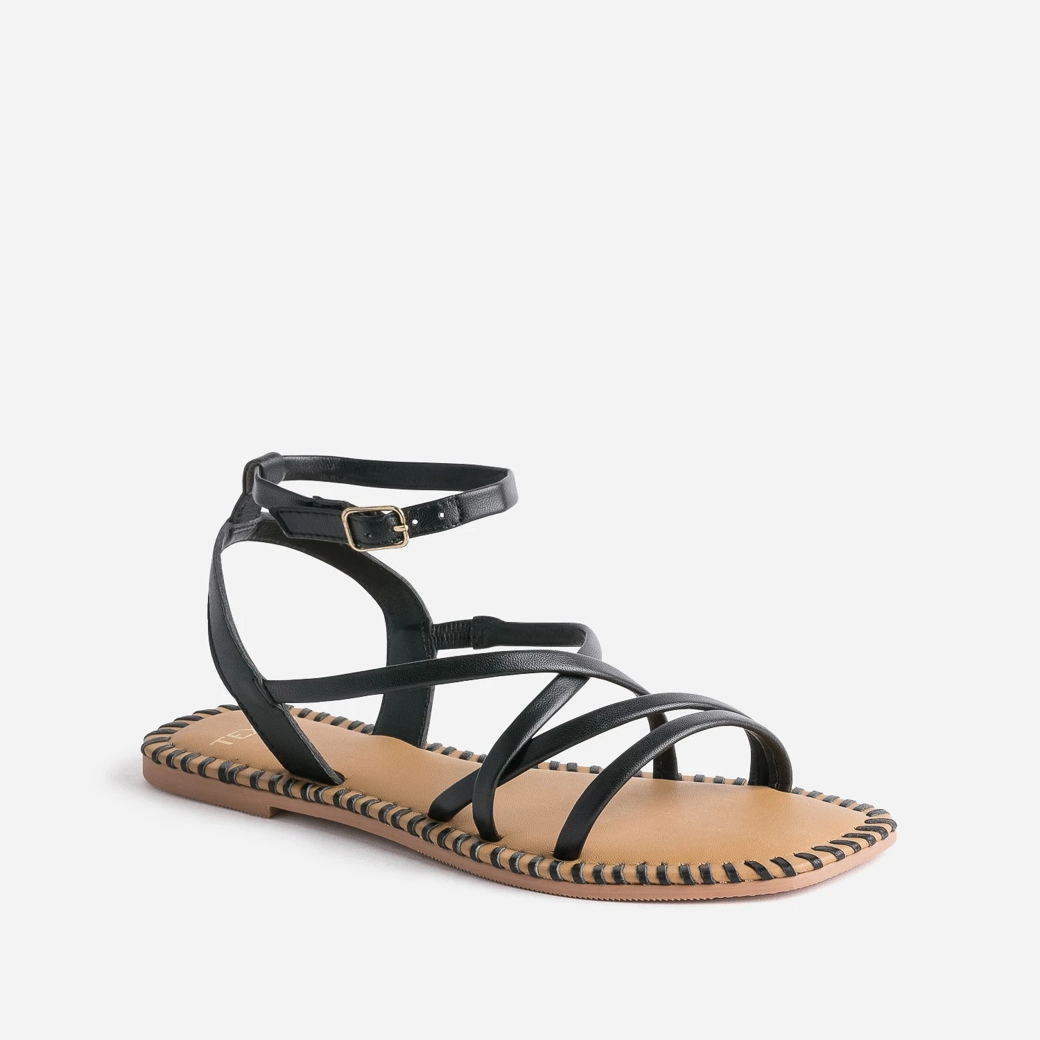 Plus les températures montent, plus l’envie d’aérer ses pieds devient forte. Cette sandale femme promet une vraie libération, grâce à un jeu de brides fines. En cuir noir, elle s’autorise une inspiration ethnique par un tressage subtil sur la trépointe, modernisé par un bout carré. Plate, elle est idéale avec un caraco à fines bretelles et un pantalon large, uni ou imprimé.