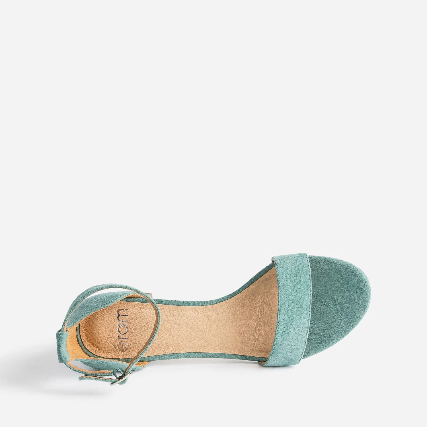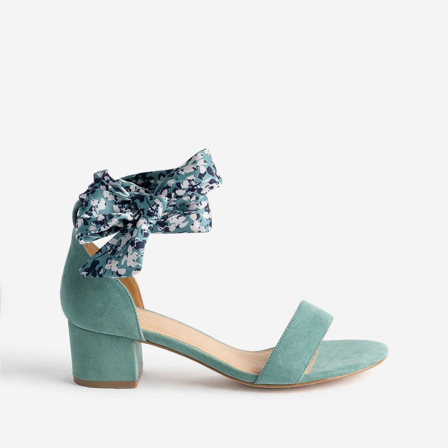 Cette sandale pour femme frise la perfection. Pourquoi ? Pour son coloris vert sauge, tendance, pour sa matière suédée, pour son petit talon de 4,5 cm. Son atout mode ? Deux brides amovibles, l’une verte assortie, l’autre façon foulard à imprimé floral, à interchanger à l’envi. Idéales pour matcher avec toutes les tenues et tous les styles.