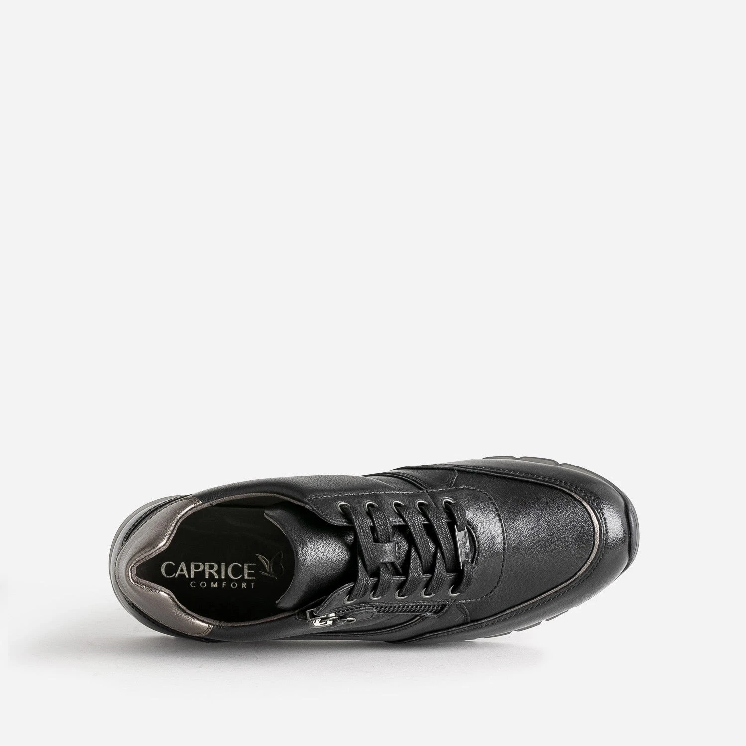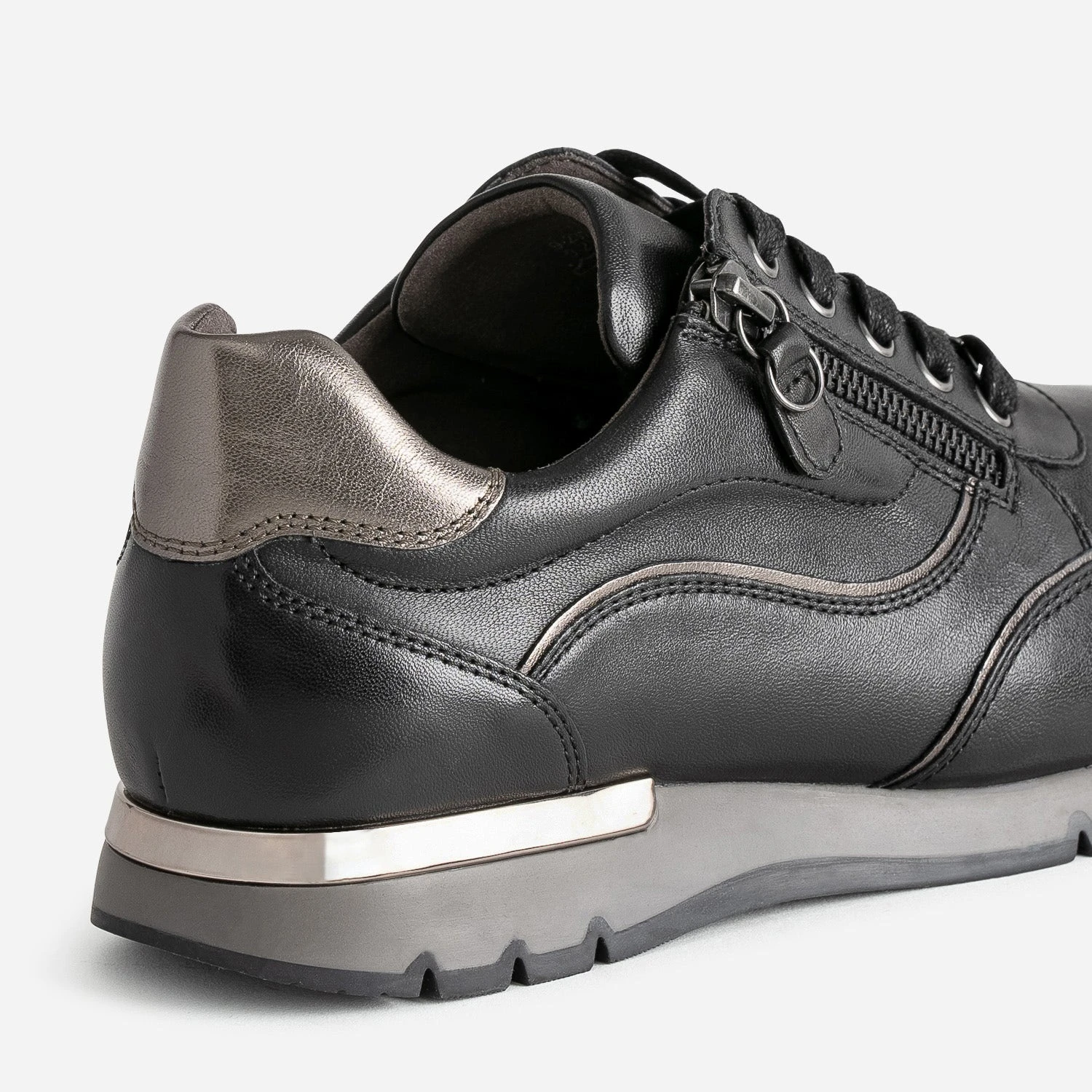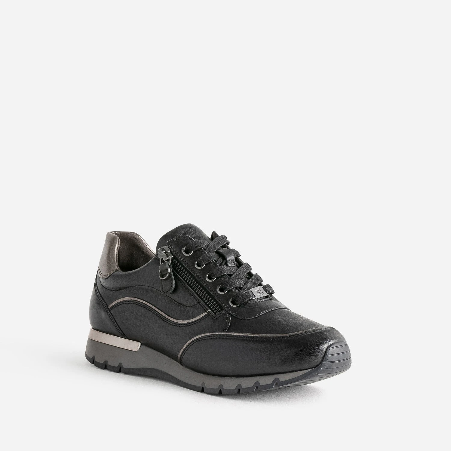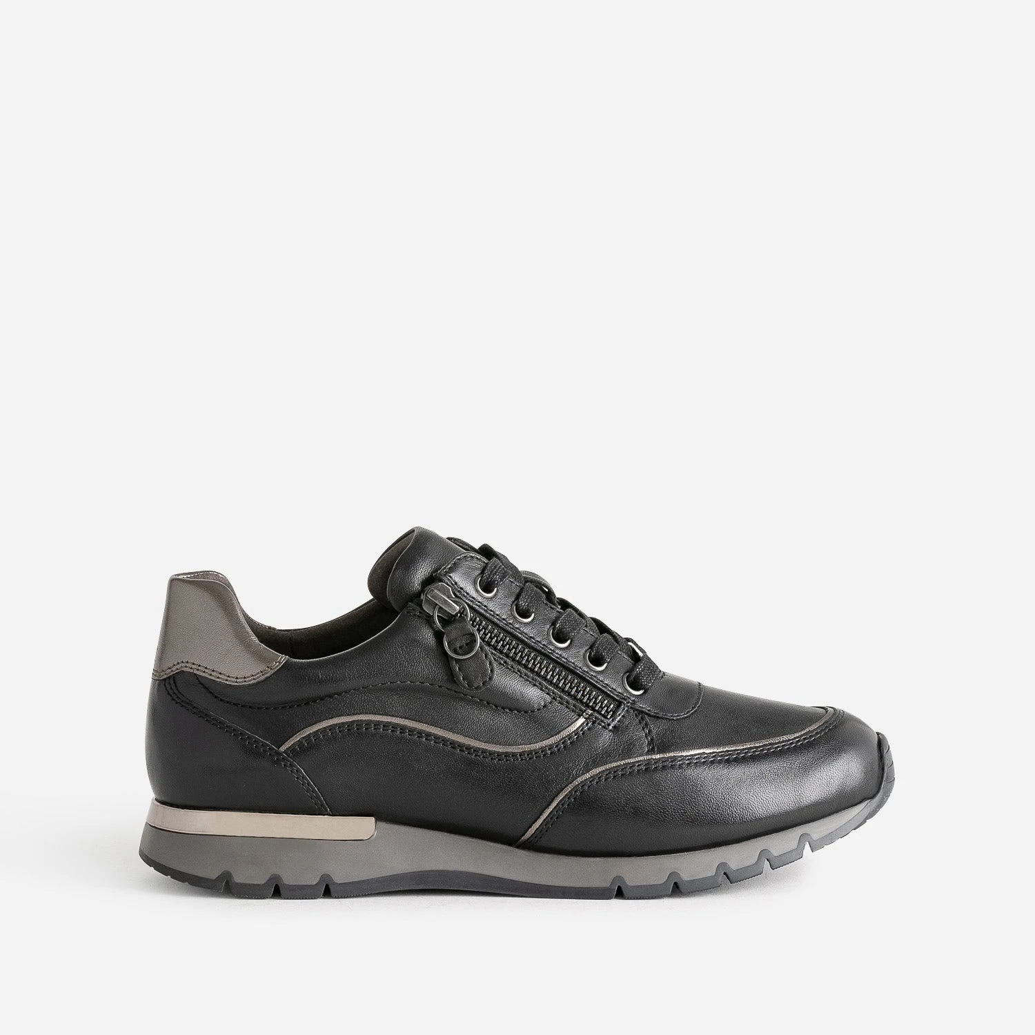 Vous aimez marcher ? Essayez cette nouvelle sneakers basse pour femme. D’abord pour sa doublure en cuir et pour sa première en cuir qui bénéficie de la technologie ‘onAIR’, garantissant un meilleur amorti et une parfaite aération de la chaussure. Montée sur une semelle sport, crantée pour une adhérence optimale sur toutes les surfaces, elle séduit par son cuir noir, souligné d’un contrefort bronze. Un modèle fermé par lacet et zip latéral à privilégier avec une tenue casual.