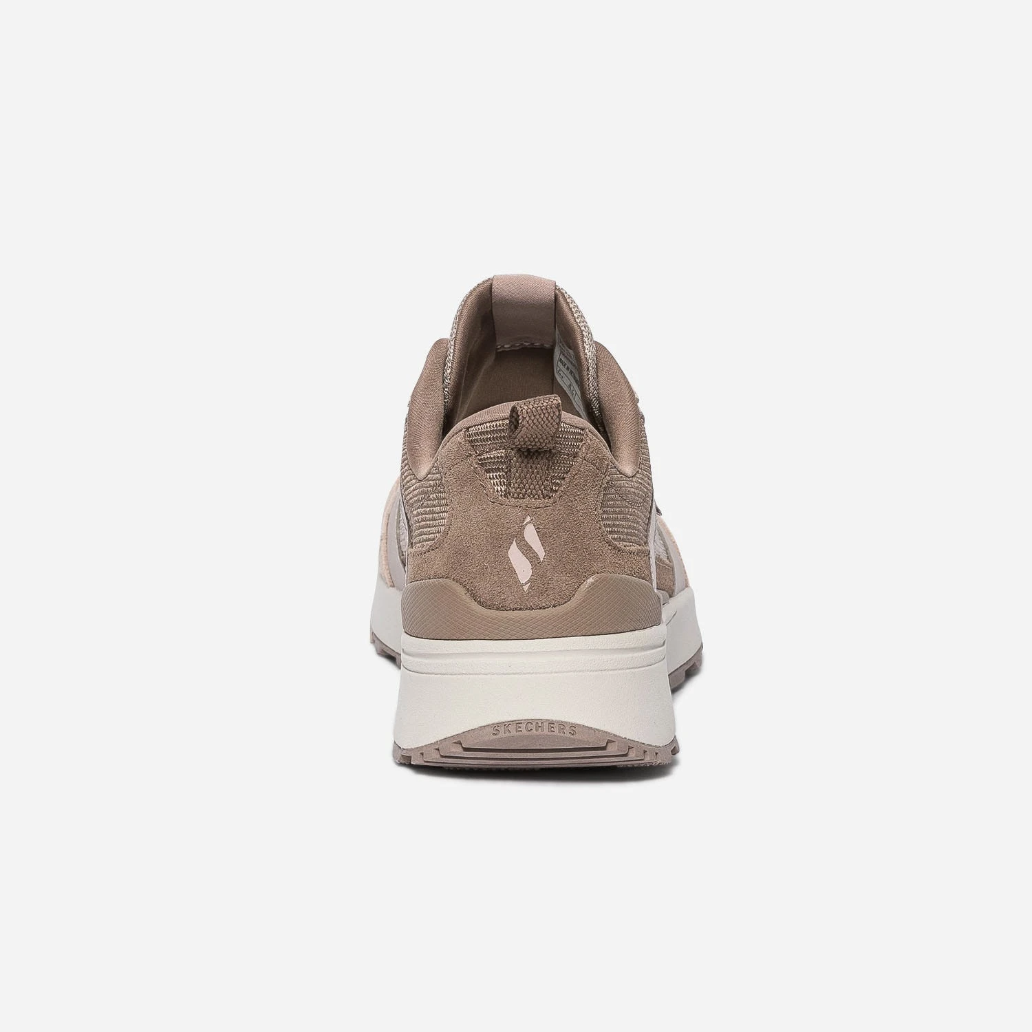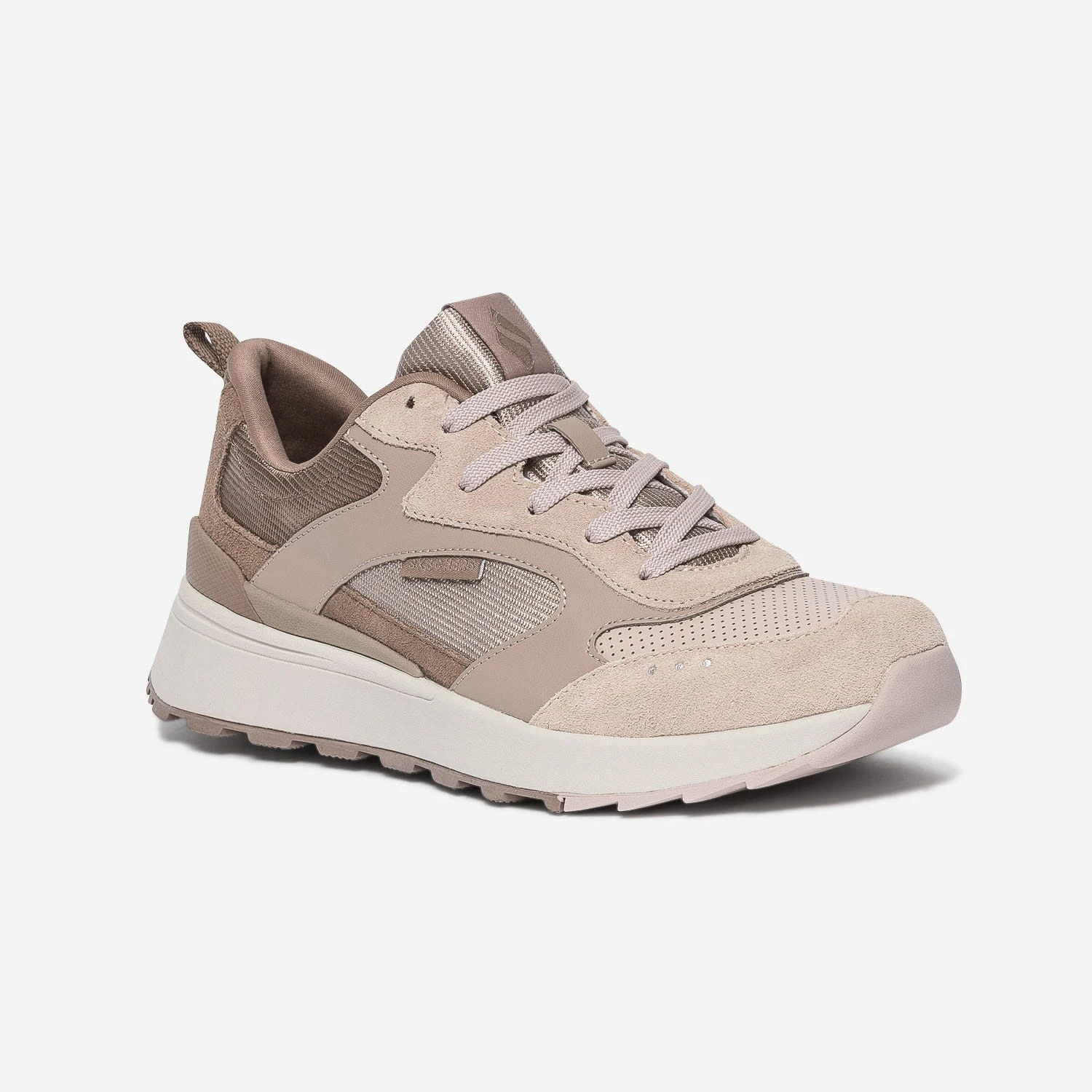 Installée en Californie, la marque SKECHERS chausse les sportifs depuis plus de 25 ans. Cette tennis pour femme affirme son esprit sportswear par un design modernisé par des mélanges de matières, autour d’une même couleur : le beige. Cuir velours et lisse, mesh et perforations s’associent dans une harmonie pile dans la tendance. La semelle est brevetée de la technologie Air-Coold Memory Foam, garantie de respirabilité et de confort. Un modèle à porter encore et encore !