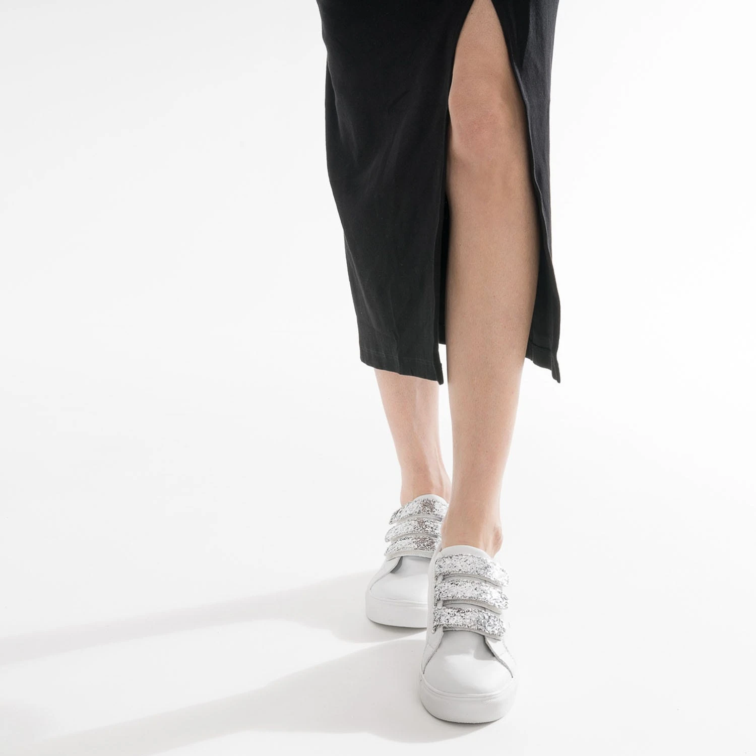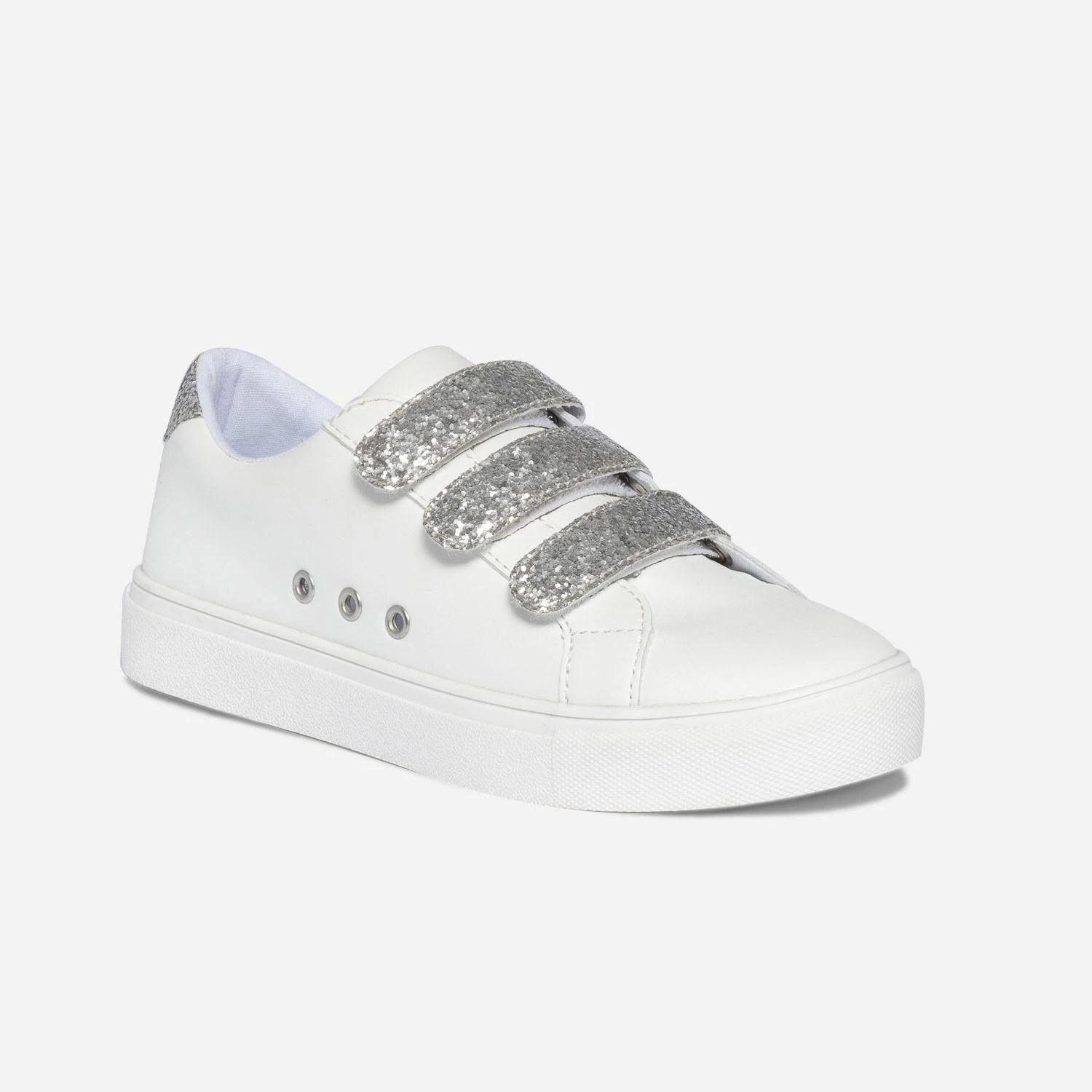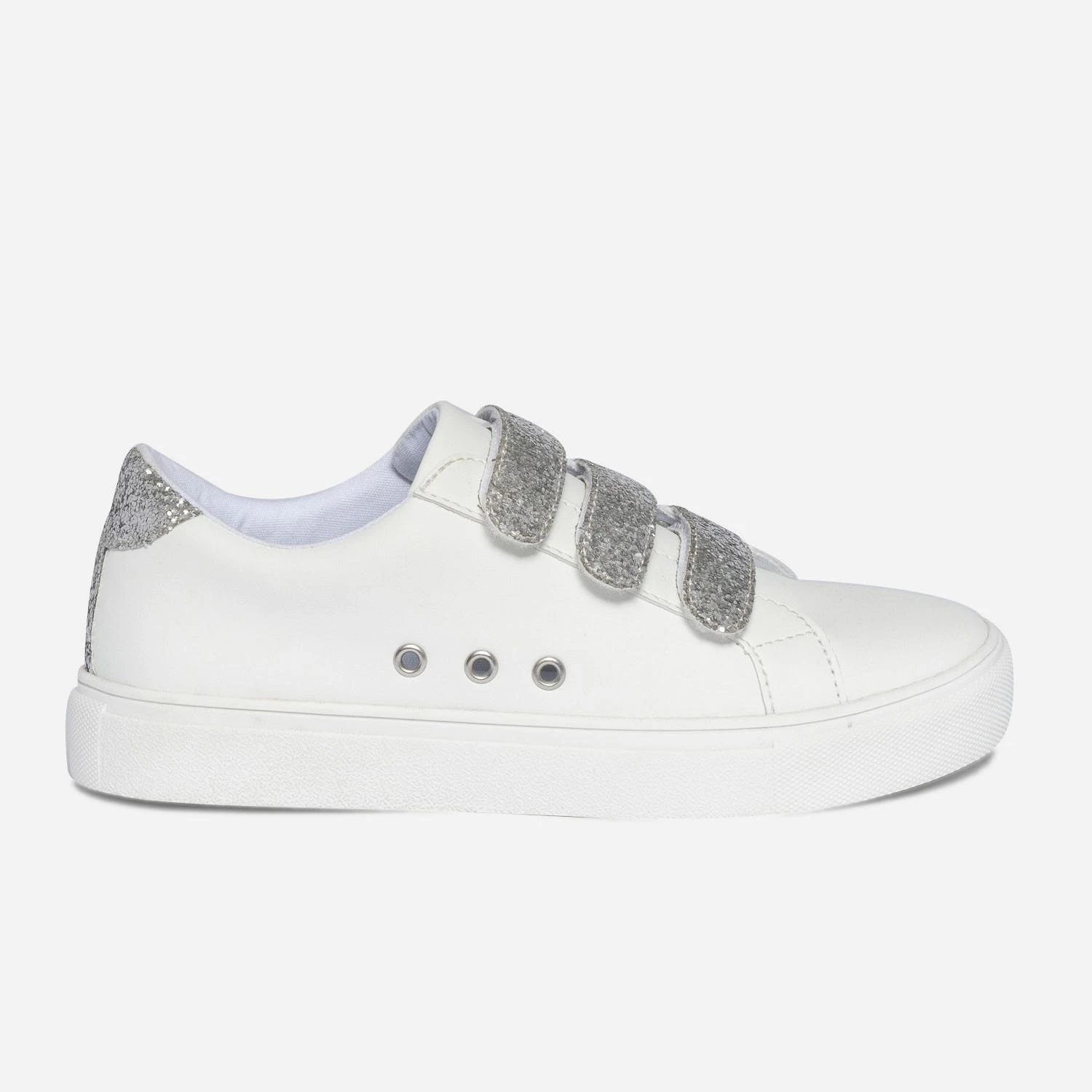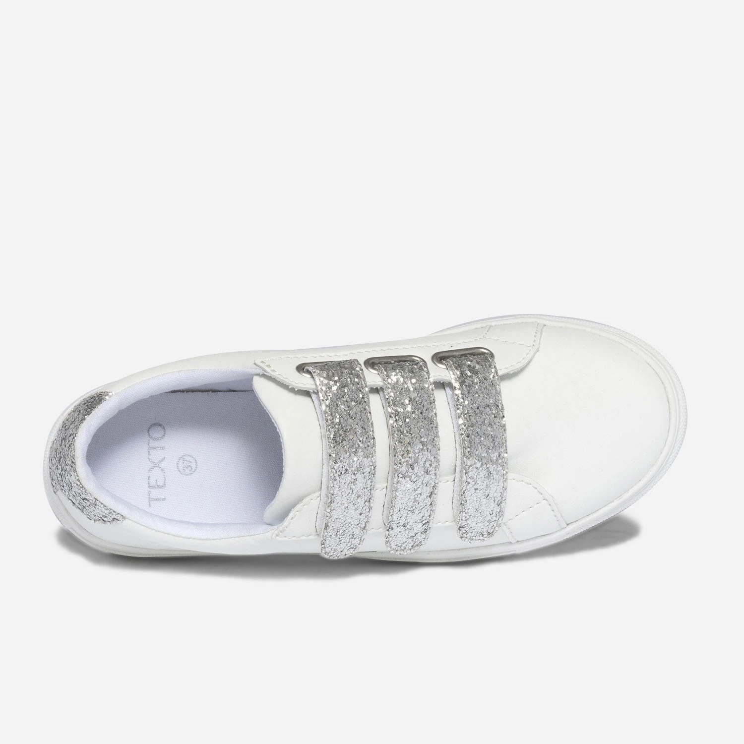 Tennis TEXTO Blanche à Scratchs Pailletés Argentés