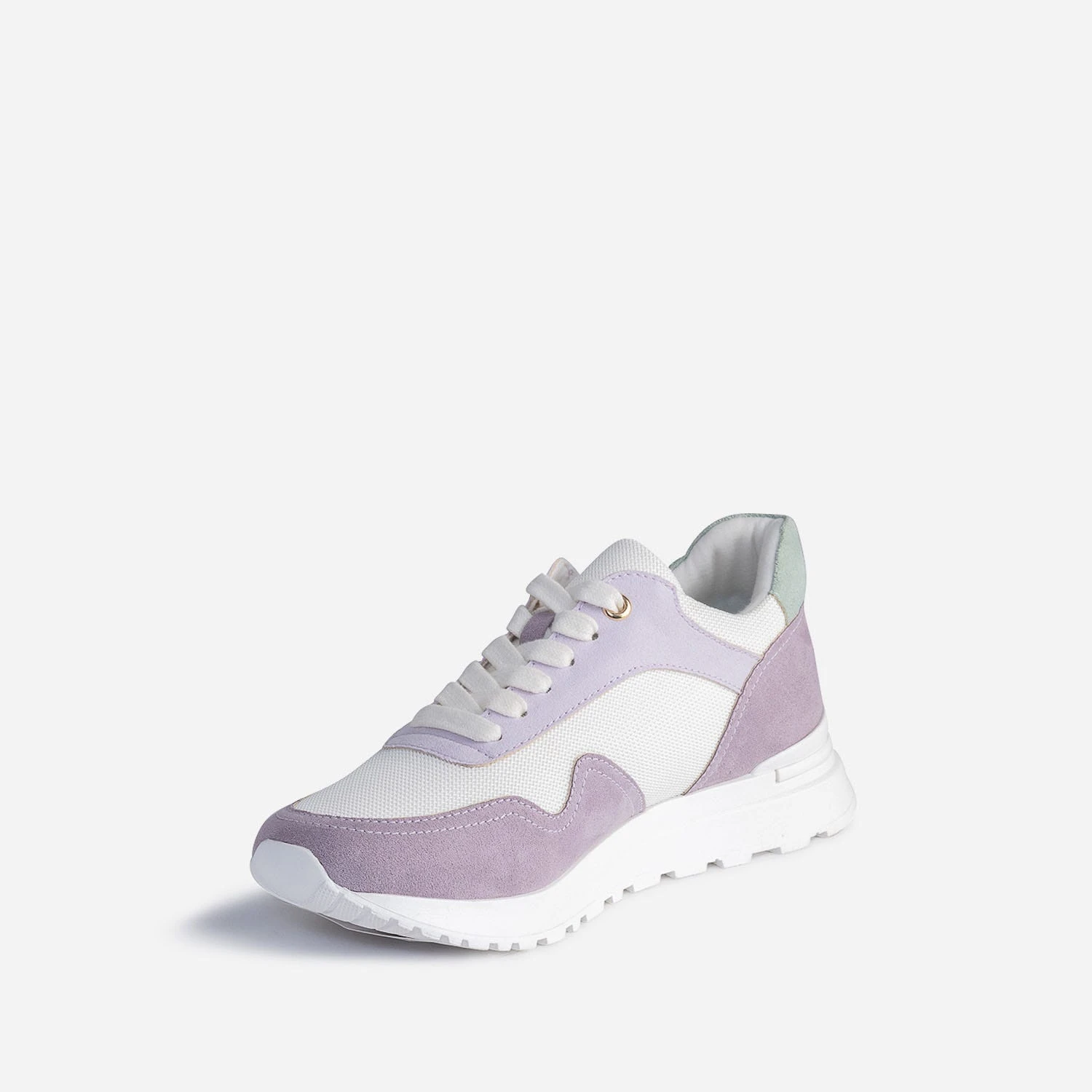 Passion couleurs pastel. Passion sneakers. Cette tennis femme concilie tout ce dont vous rêviez. Mesh blanc, matière synthétique parme et vert sauge, elle s’invite du bon pied dans le printemps, et tout au long de l’été. Imaginez-la avec un costume pantalon violet, ou bien avec un tee-shirt blanc et une jupe longue plissée vert amande.